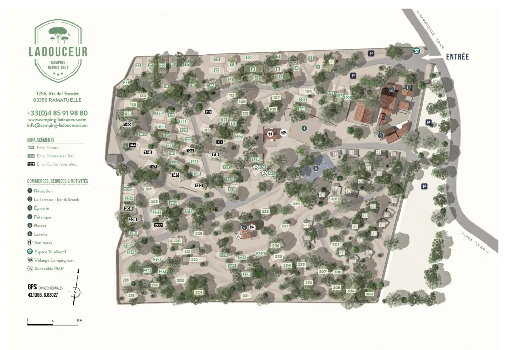 Consultez en détails le meilleur endroit pour poser votre installation dans notre camping 3 étoiles durant votre séjour à Ramatuelle. Découvrez différents types d'emplacement pour tentes, caravanes et camping-car que nous vous proposons ainsi que les services et commerces disponibles sur place.